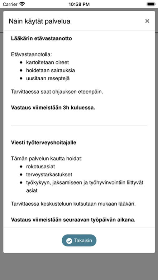Sovelluksella saat yhteyden lääkäriin niin työmaalta, toimistosta kuin telttaretkeltäkin.