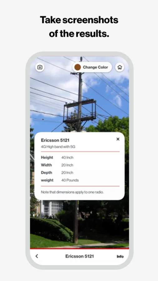 The Photo Simulator app lets you use augmented reality (AR) to create images of cell radios and/or integrated poles superimposed over real-world poles. This speeds up turnaround times and reduces the cost of developing photo mockups of new sites from landlords or city officials.