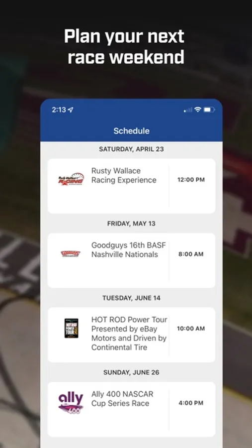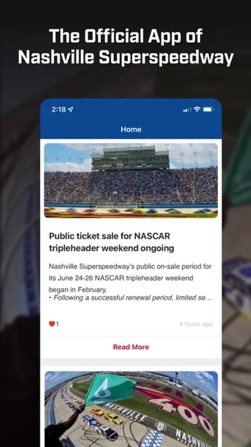 Welcome to the official app of Nashville Superspeedway, bringing fans closer to the action and enriching your event experience. Get all the info you need for race day and beyond, plus exclusive content, and personalized offers and experiences. This is a mobile experience to help you find what you love whether it’s event information, special access, or offers and discounts.