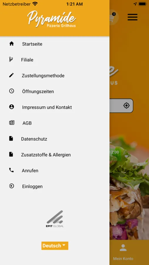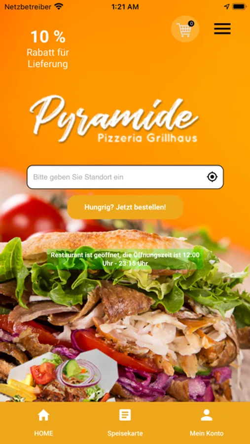Abholen und Geld sparen! Abholer erhalten ab 25€ Bestellwert ein Getränk gratis! Lieferzeiten: Mo. - So.: 12:00 bis 23:00 Uhr