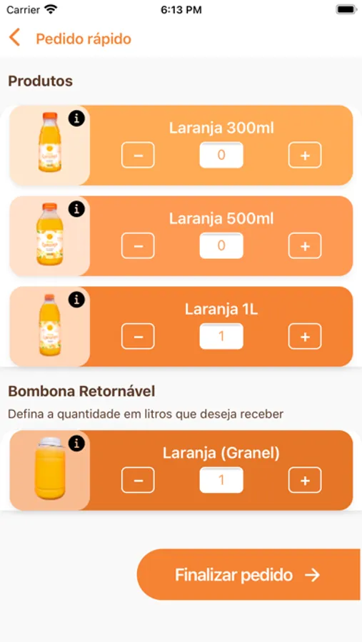 Através do nosso app, você pode gerenciar seus pedidos, definindo os volumes, quantidades de garrafas e as datas de entrega.