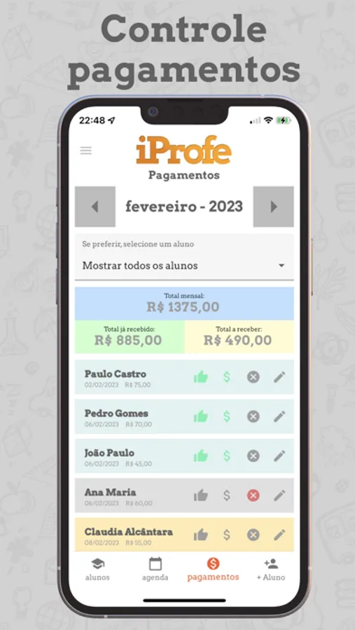 Perfeito para gerenciar seus alunos, aulas, pagamentos, agenda semanal e grade horária!