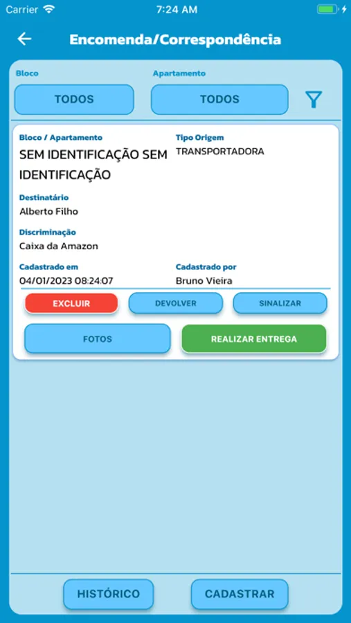 - Visualização da Encomenda/Correspondência da respectiva unidade;