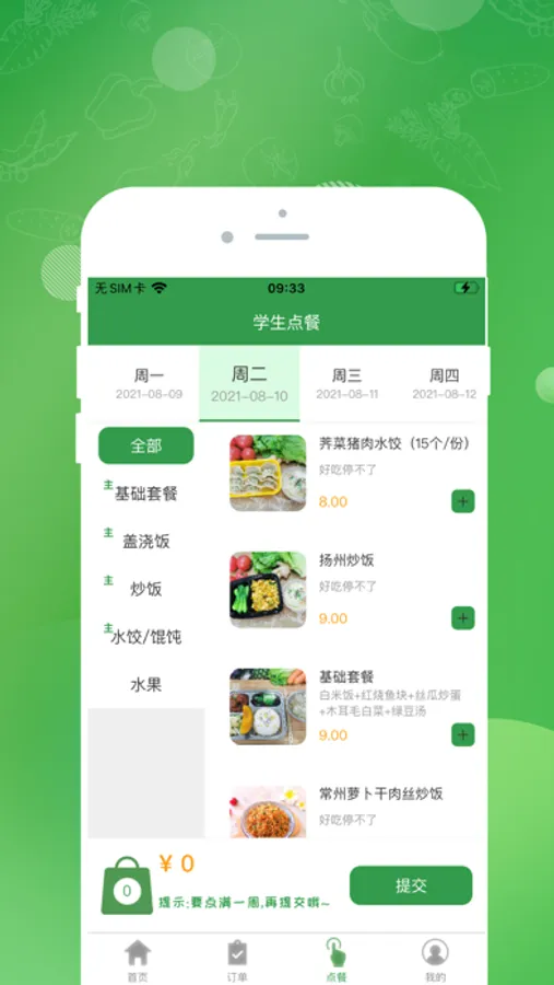 1、学生或学生家长登陆App后可以选择下周的午餐品种。
