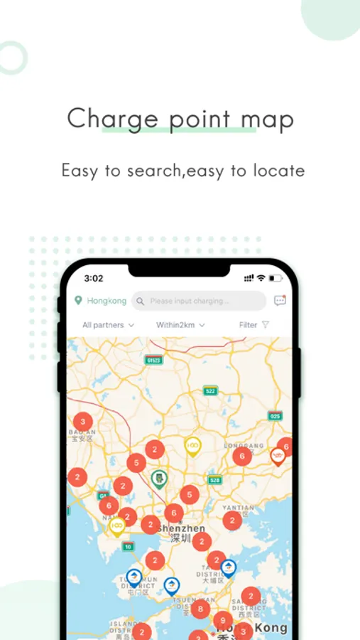 [Nationwide charge point network] Display the location and real-time status of charge point in a map or list. You can quickly locate the charging station with multiple filtering conditions.