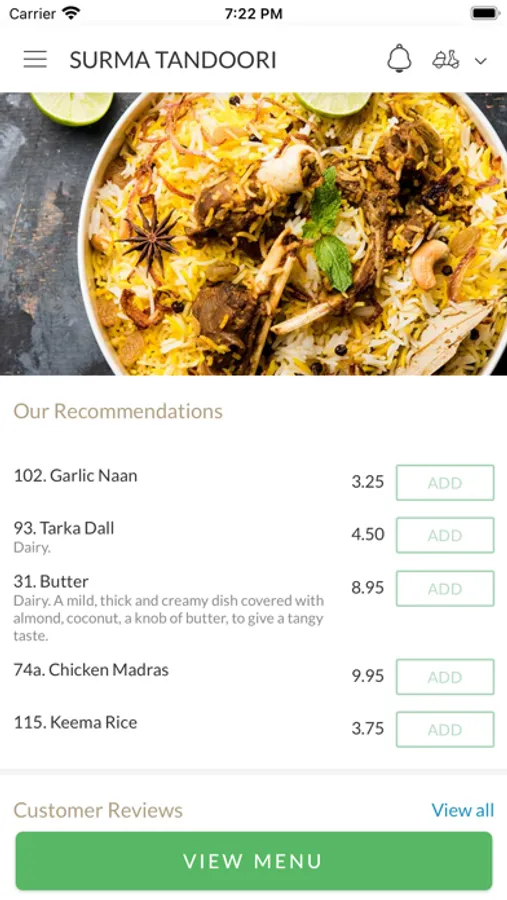 We offer a world of flavours and spices, which all comes together to create a dining experience that will transport you to another world. Our chef prepares all of our authentic dishes completely fresh, we also offer a wide range of authentic Indian cuisine to suit anyone's tastes. We have a new online ordering app which displays our entire menu - so please feel free to browse, find your favourite or try something new, and enjoy our restaurant quality meals in the comfort of your own home.