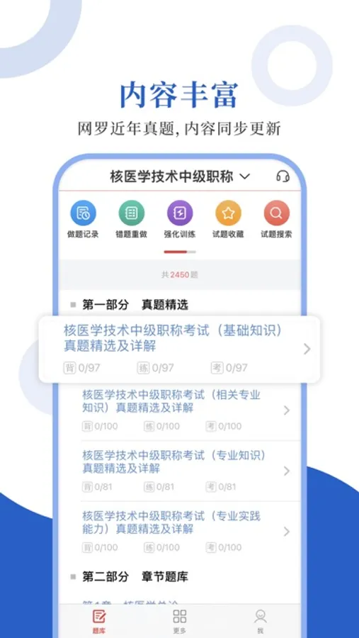 专为核医学考试精心准备的考试配套题库,每一道试题都有答案解析,为考试提供了充分的复习准备,可随时随地学习练习,支持手机、平板多端同时使用。