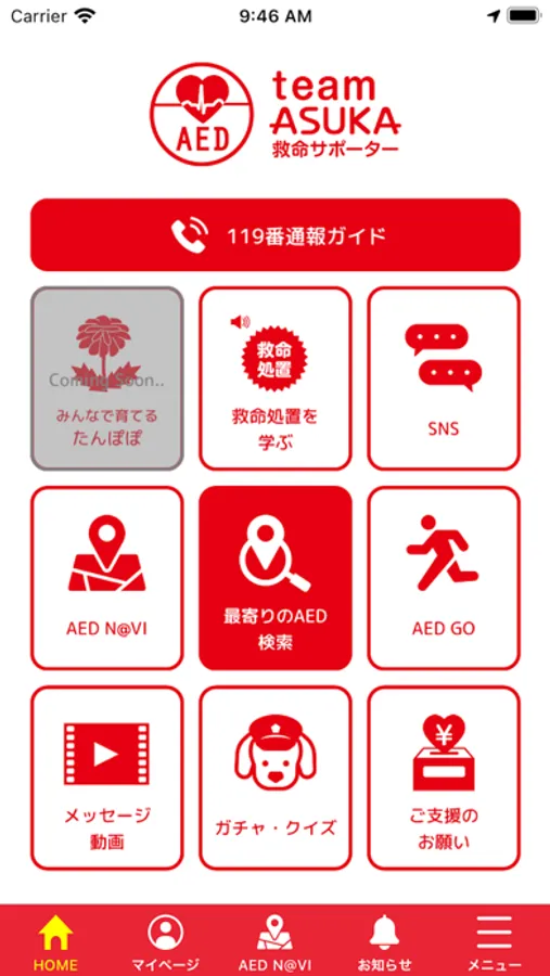 年間7万人以上に発生する突然の心停止。救うことができるのは、そのときそばにいる“あなた”だけです。皆で作るAEDマップAED N@VIが、もとの機能はそのままに「救命サポーターアプリ team ASUKA」へと生まれ変わりました。救命サポーターアプリは、命を助けたいと思う方を支援し、繋ぐアプリです。ぜひアプリをダウンロードし、救命サポーターの一員になって下さい。