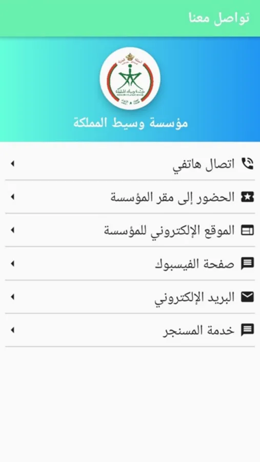 خدمة تواصل معنا : حيت تمكن هذه الخدمة من التواصل مع المؤسسة عن طريق الهاتف الهاتف أو مواقع التواصل الاجتماعي.