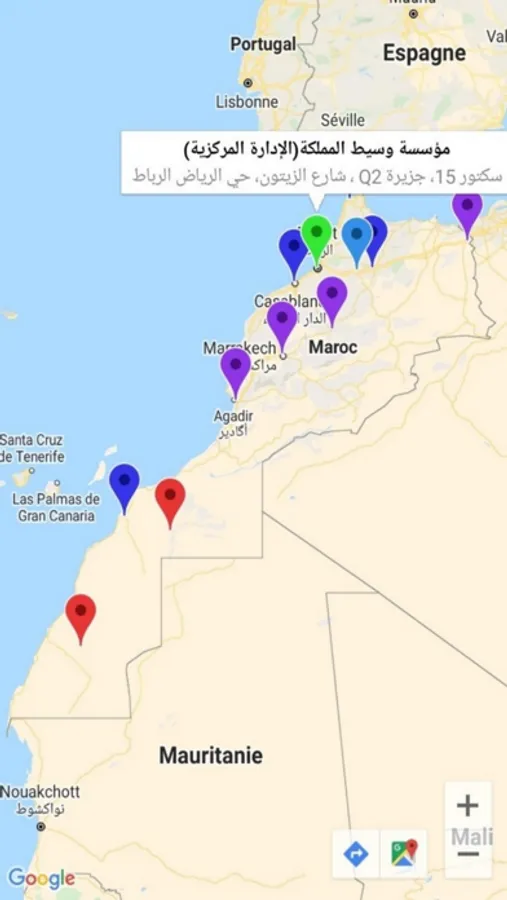 خدمة عناوين المؤسسة : حيث تمكن هذه الخدمة من معرفة أقرب تمثيلية للمؤسسة مكانيا بالنظر لمكان تواجد المتظلم، كما يوفر التطبيق معلومات الاتصال بمختلف هذه التمثيليات، وإحداثيات الموقع الجغرافي الخاصة .بها عبر نظام الخرائط الذكية