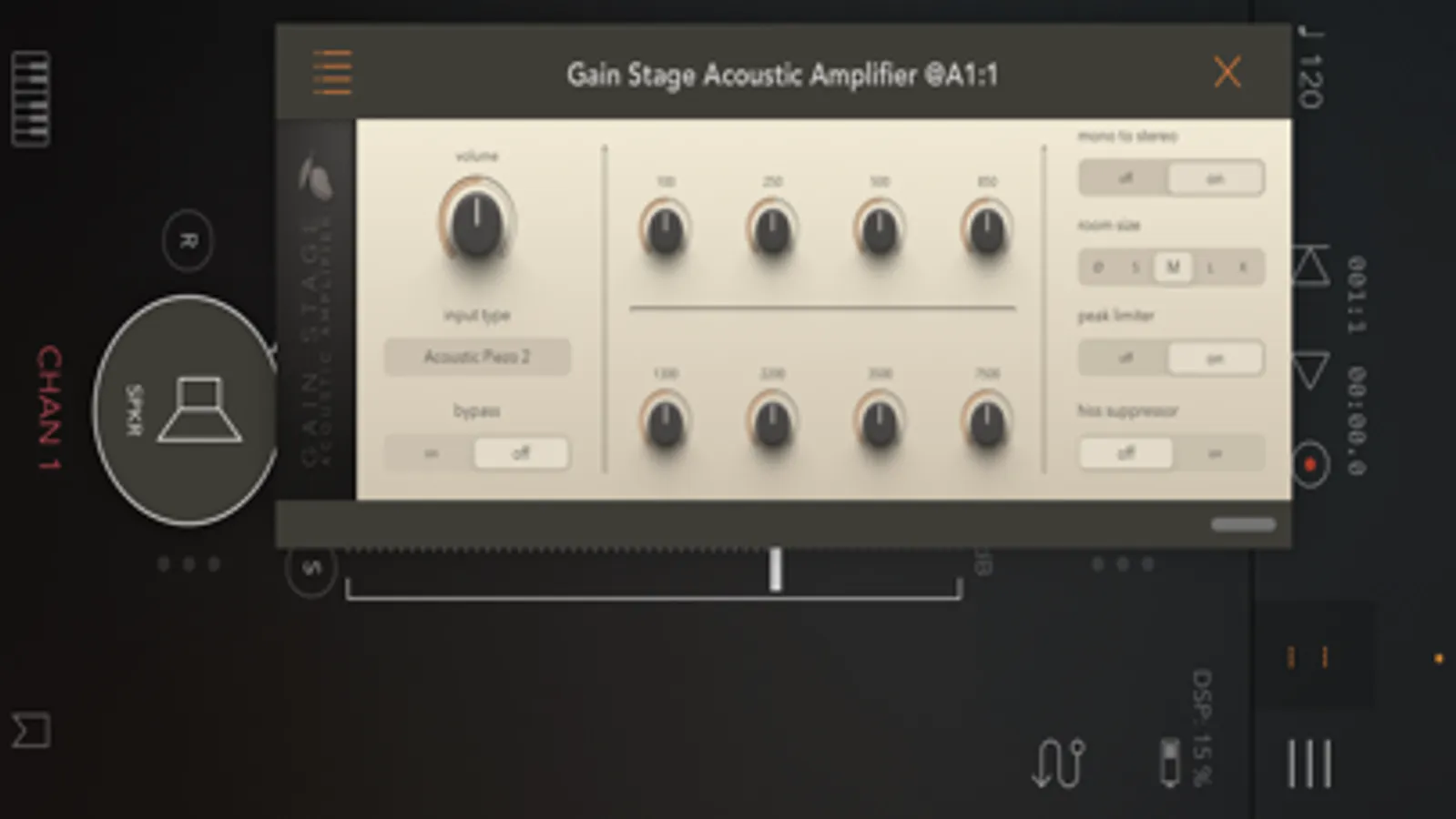 Gain Stage Acoustic makes electric guitars sound acoustic and makes acoustic guitars with piezo pickups sound more natural. It includes input presets for a wide variety of magnetic and piezo pickups. Select the input type that most closely matches your guitar and pickup configuration, adjust to taste with the included eight band equalizer, and you're ready to go.