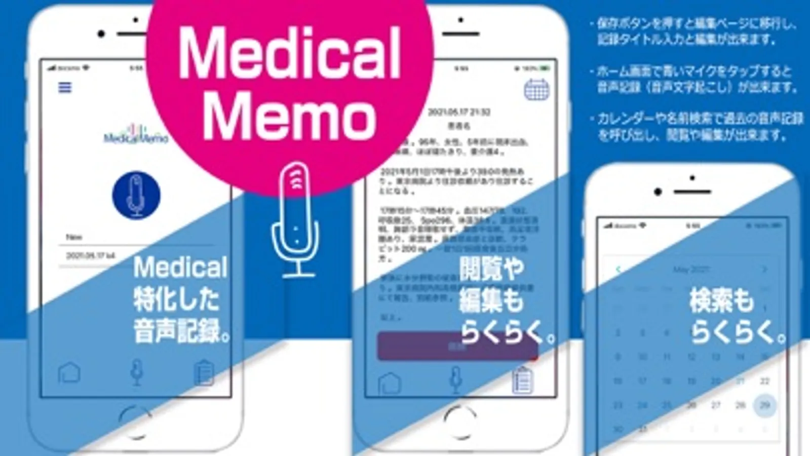 医療・ヘルスケア分野のことばに対応した音声記録(音声文字起こし)アプリです。