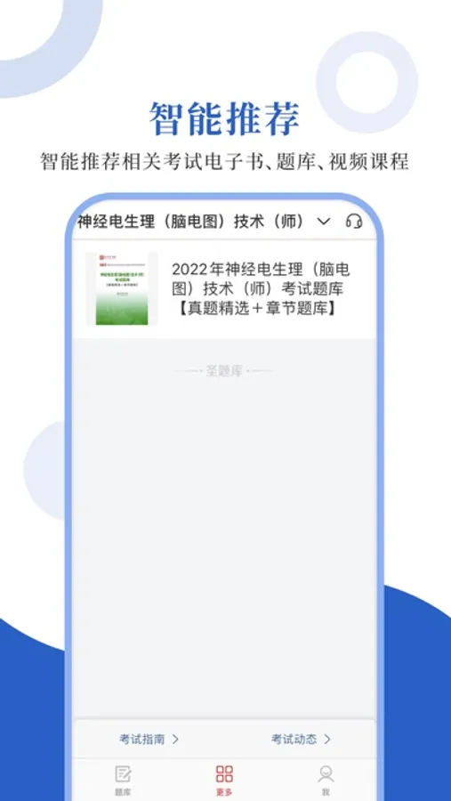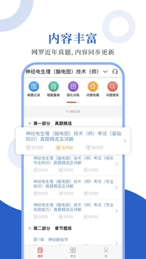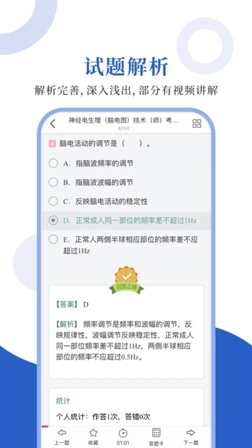 专为神经电生理考试精心准备的考试配套题库,每一道试题都有答案解析,为考试提供了充分的复习准备,可随时随地学习练习,支持手机、平板多端同时使用。