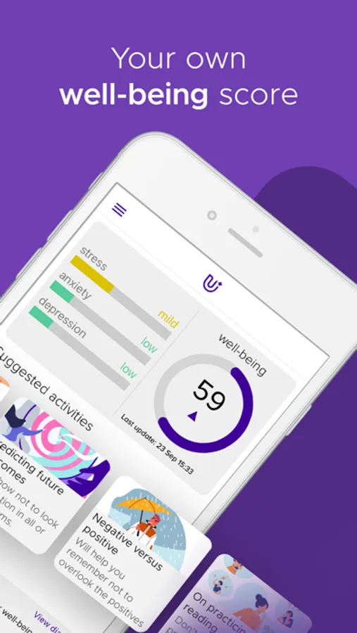 uMore is an award-winning monitoring, self-love, mental health app for prevention or self-help. Check your personal wellbeing score and track stress, anxiety, and depression in the Track tab.