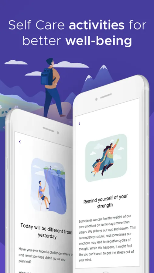 Practice self-care activities and evidence-based recommendations to help you cope. These activities in our mood tracker free app are versatile, and also include digital exercises to ease stress, anxiety, depression and other mental health problems.