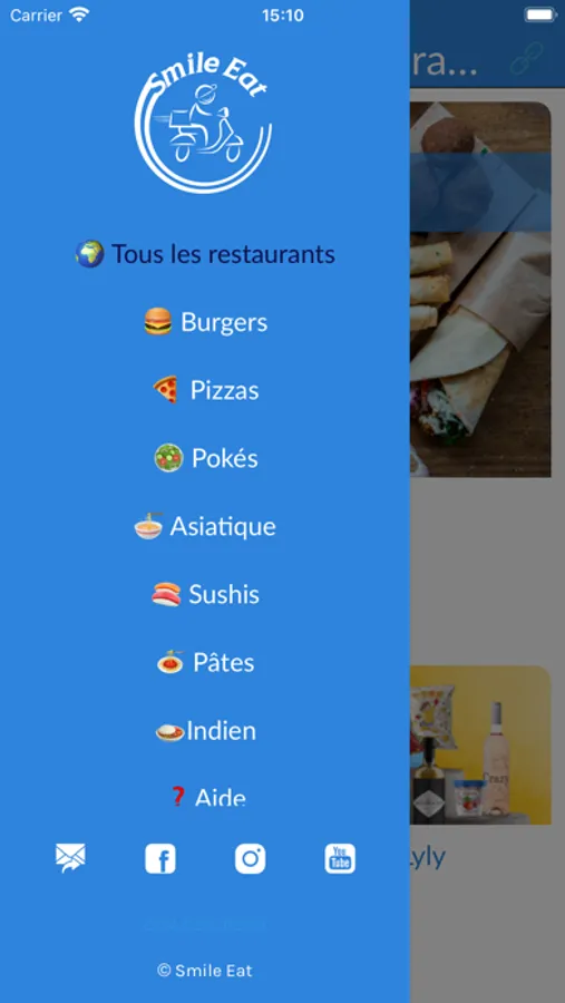 Smile Eat est un service de livraison de repas à domicile auprès des restaurants mentionnés dans l'application.