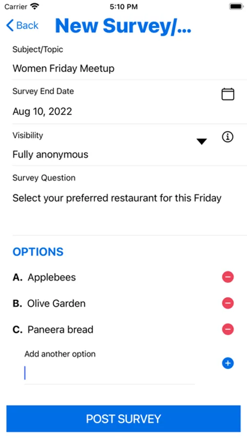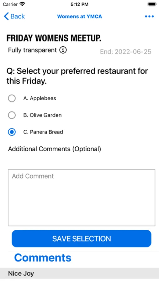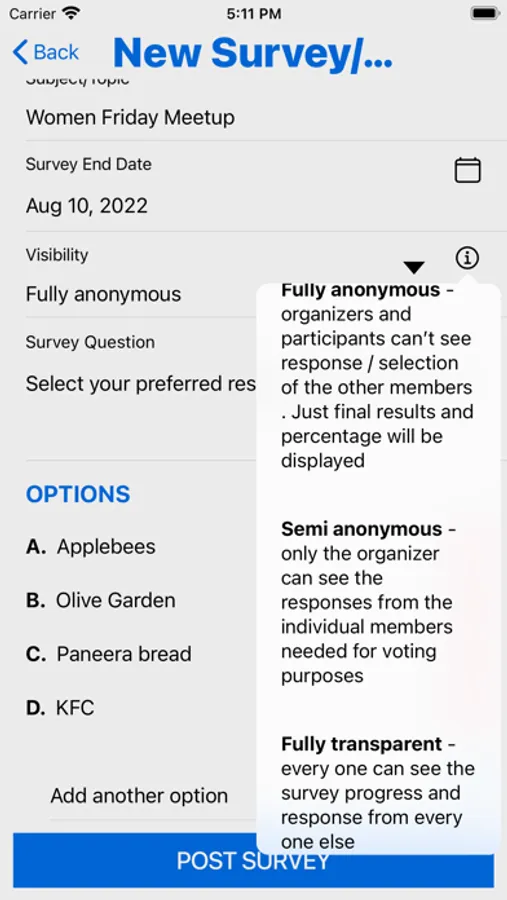 This is a free app to conduct voting and survey within a small to medium-sized community /group. It can be used at the workplace, churches, local communities, homeowners associations, and schools, etc.