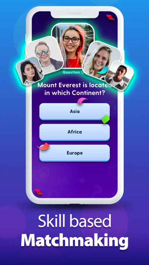 ►Matched with players in the same skill level, play the same questions – so the game is fair and skill-based.