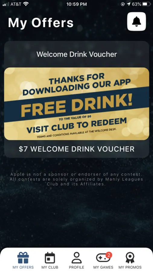 * Be part of exclusive interactive Club Promotions, sent to your phone via push notification for redemption at the venue counter