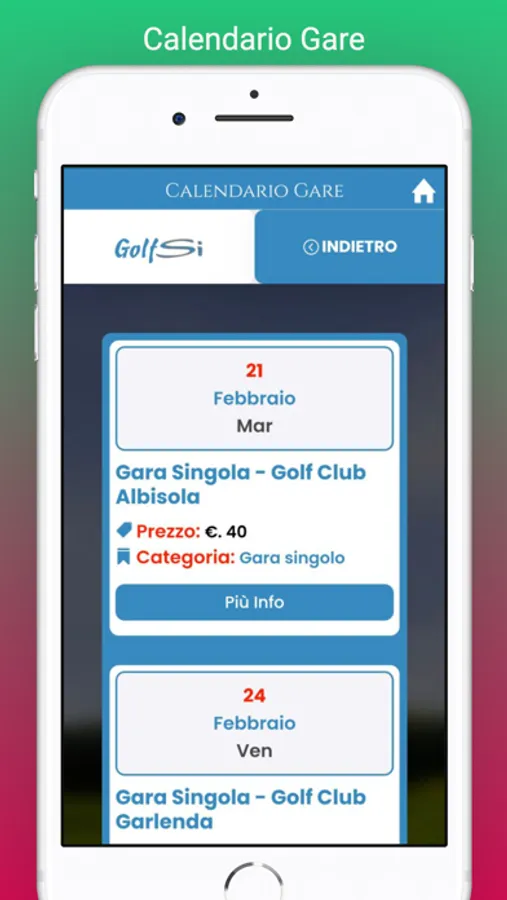 Il circuito GolfSi è il più antico torneo di Golf infrasettimanale. Con l'App GolfSi potrai visualizzare il calendario gare, consultare le classifiche aggiornate, iscriverti alle gare ed al circuito. Leggi anche tutte le news dal mondo GolfSi. Ricevi le notifiche direttamente sulla App GolfSi e non perdere nemmeno un appuntamento del miglior torneo di golf in settimana...