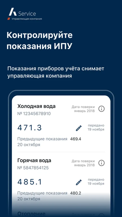 • Посмотреть текущие показания индивидуальных приборов учета;