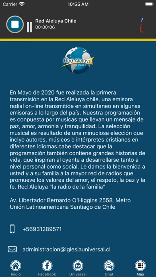En Mayo de 2020 fue realizada la primera transmisión en la Red Aleluya Chile, una emisora radial on-line transmitida en simultaneo en algunas emisoras a lo largo del país.