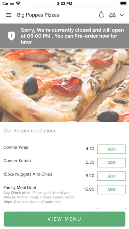 Here at Big Poppas Pizzas we are constantly striving to improve our service and quality in order to give our customers the very best experience. As a result, we are finally proud to unveil and introduce our latest improvement, our new online ordering app! You can now relax at home and order your favourite, freshly prepared meals from Big Poppas Pizzas online. You can even pay online!