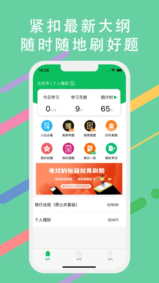 银行从业资格考试一款随时随地可用的智能高效刷题软件。考生可通过设置备考目标,快速开启高效提分计划。同时我们拥有超大型在线题库,主要功能包括章节练习、随机练习、高频考题、历年真题,模拟考试等多种形式,让学生边学边练,达到进一步巩固学习效果的目的。在考前冲刺阶段还有考前模拟试题,帮助学员模拟实战,把握考试精髓,增加考试通过率。