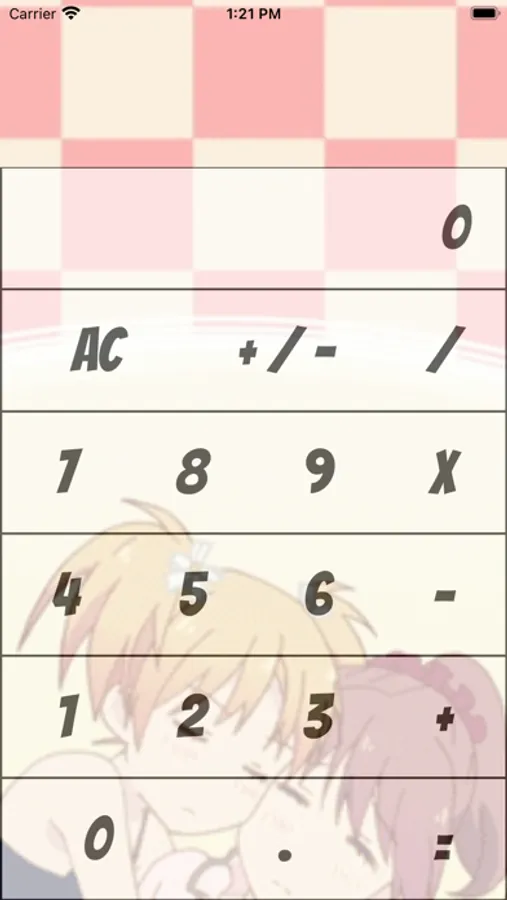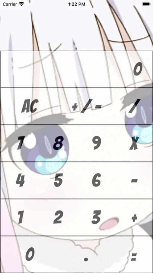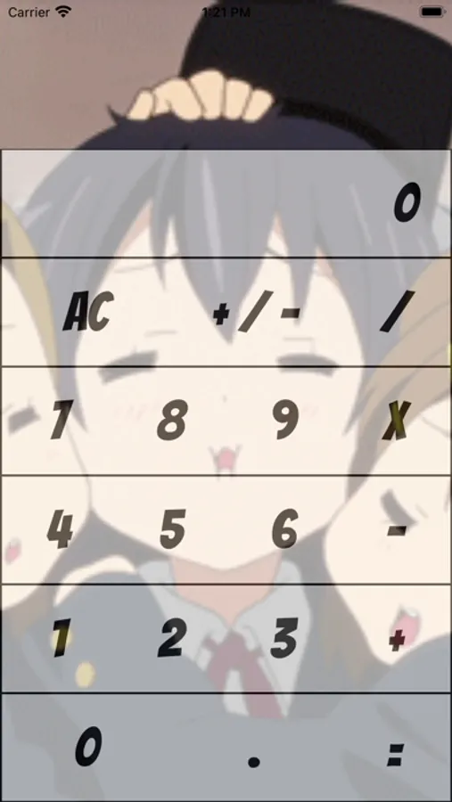 Anime Calculator can perform 4 basic math actions and has changing anime backgrounds.