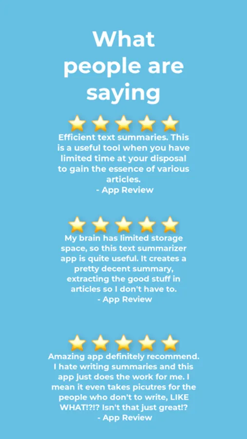 Whether you are working, researching, browsing, creating content, or just trying to stay informed, Text Summary helps you cut through the noise and understand content in minutes instead of hours.