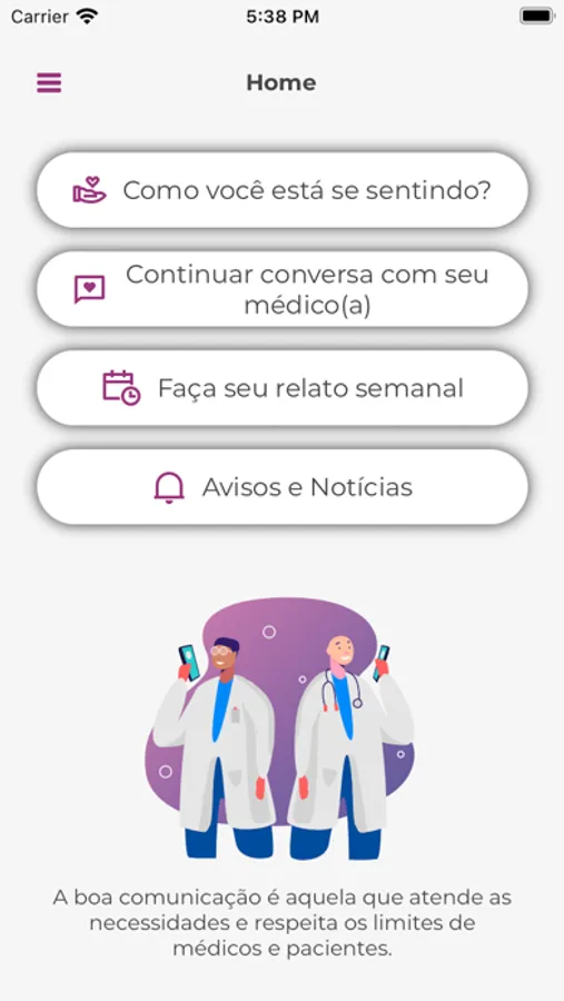 No aplicativo você consegue notificar todos os sintomas a qualquer momento, e seu médico recebe alertas caso necessario, alem de poder ter um canal direto de comunicação.