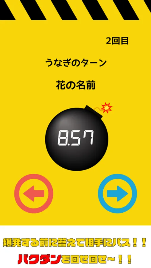 お題に沿った答えを制限時間内に1人ずつ言ってスマホ(バクダン)を回す新感覚ゲーム