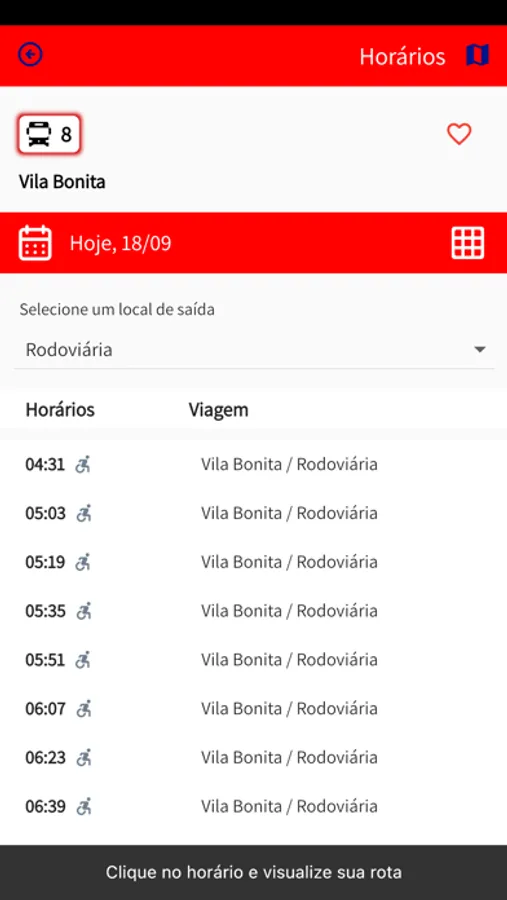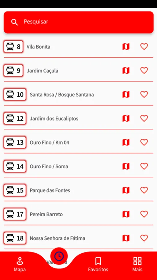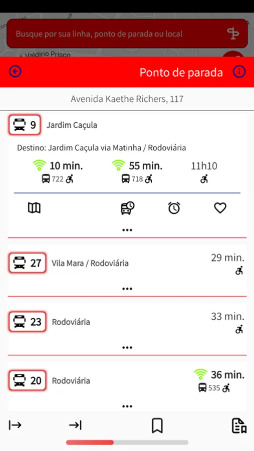 - Favoritar linhas. pontos de parada e deslocamentos planejados