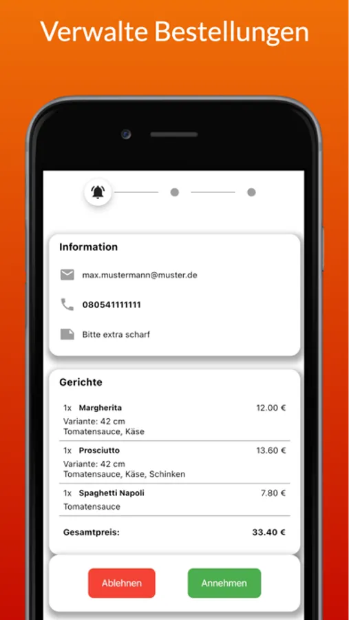 Benutze das Bestellsystem von Yamnam mit folgenden Funktionen: