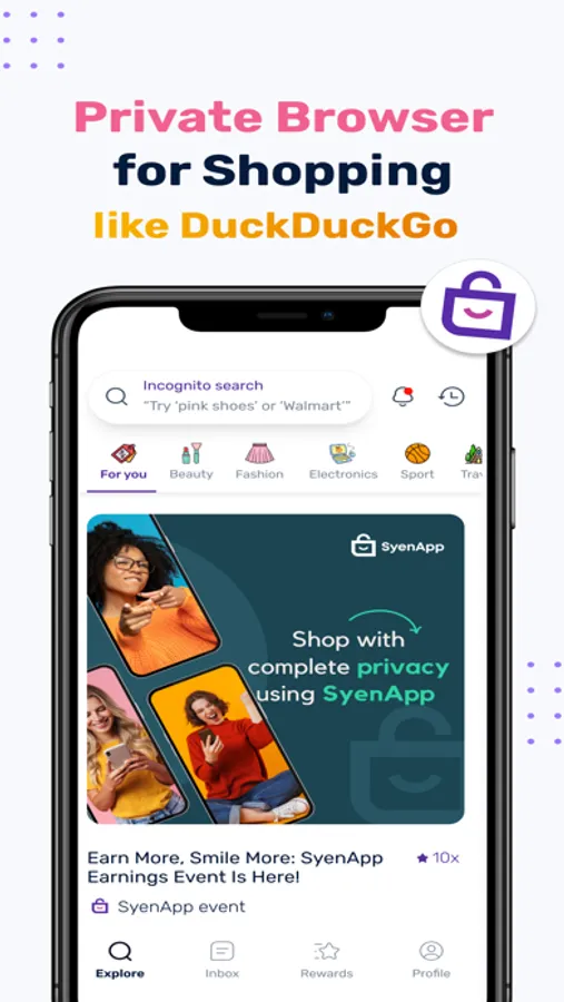 Are you concerned about your online privacy while shopping and want a secure browsing experience? Download SyenApp, the comprehensive private shopping browser app that ensures your personal information remains confidential and protected. With this super app, you can shop, search, browse, and explore the web without compromising your privacy or security while shopping. You might see many private browsers and private search apps like duckduckgo, firefox, brave and more but these are not made for shopping. Stay incognito and shop safely using SyenApp Shopping Browser with no 3rd party cookies and complete tracker protection.