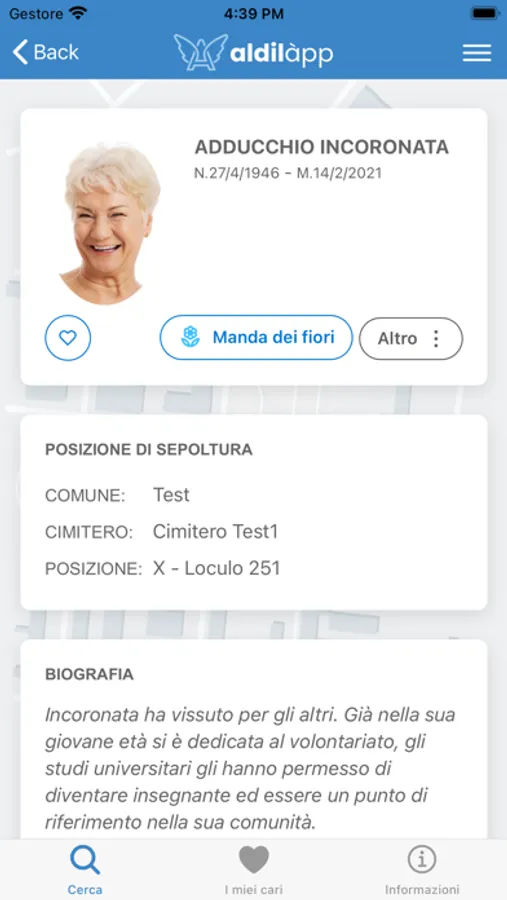 In the monumental cemetery of immense dimensions as in the extremely small one at the top of a historic village, one can orient oneself with great simplicity, thanks to Aldilàpp which is able to accurately trace the name and position of a deceased guest.