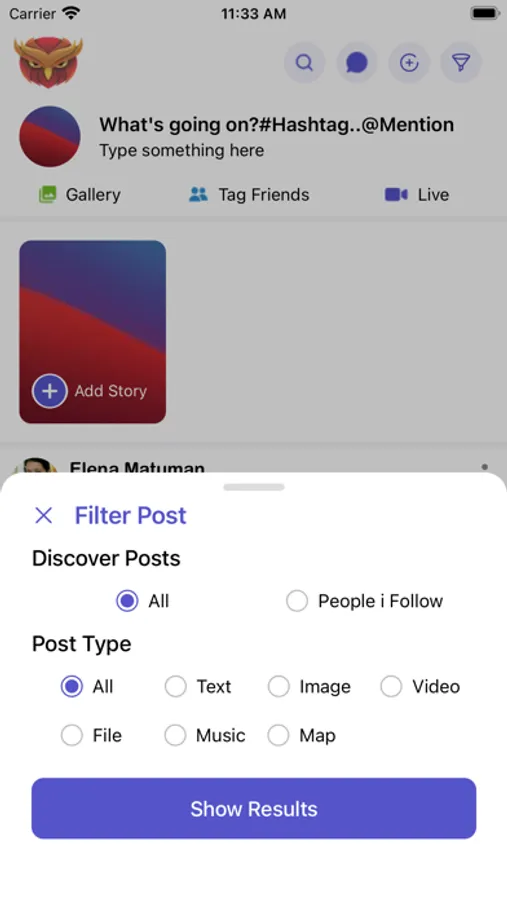 User can add their own post and share it on groups & pages and profiles