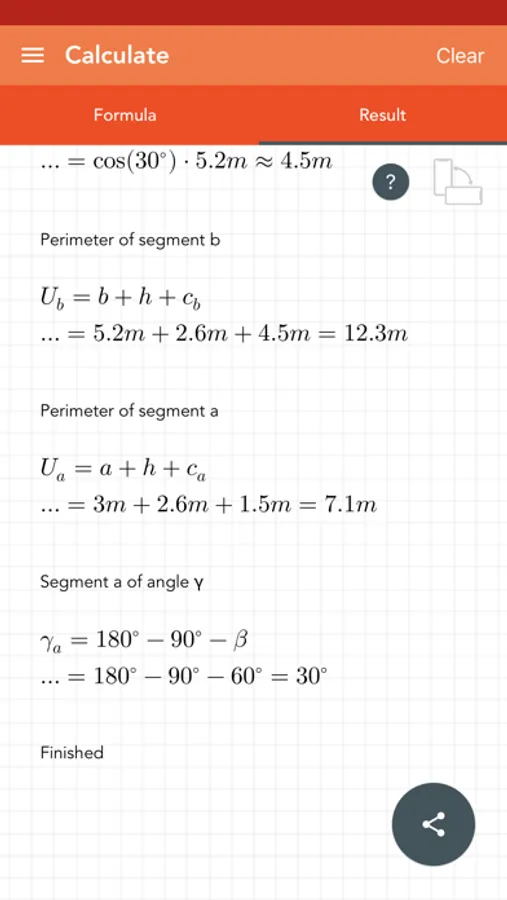The best app to calculate all quantities of a right triangle. You must enter some quantities like an angle and a length. The algorithm searches the formulas of the missing quantities, shows them and calculates the results.