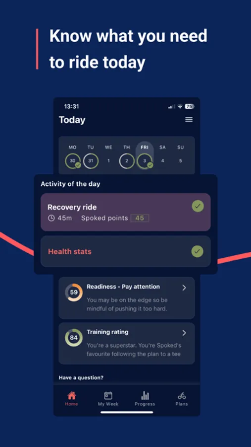 Spoked’s training plans are simple to follow and the stats help you see your progress each week. Designed for riders at all levels, getting started couldn’t be easier.