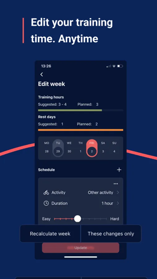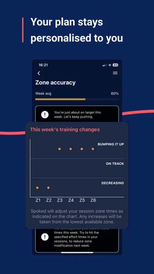 Every training plan is built around you and adjusts daily based on five key inputs: actual vs planned time in each zone, perceived difficulty, sleep quality, mental and physical freshness.