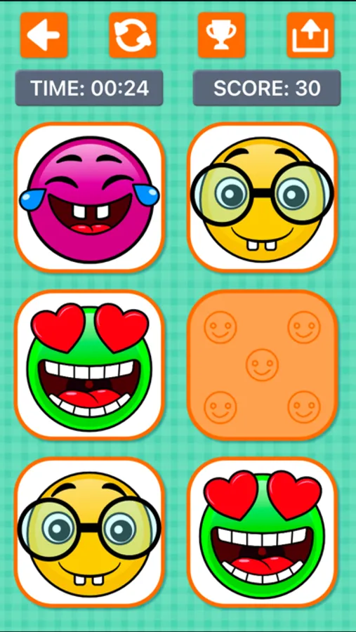 Train you Brain with New Fun Game - Memomania! It is classical memory training game with tons of fun smiley cards! This app will help you to improve your cognitive skills and concentration abilities. You can flexible select the difficulty of the game by selecting from 6,12,20 or 24 cards to play!