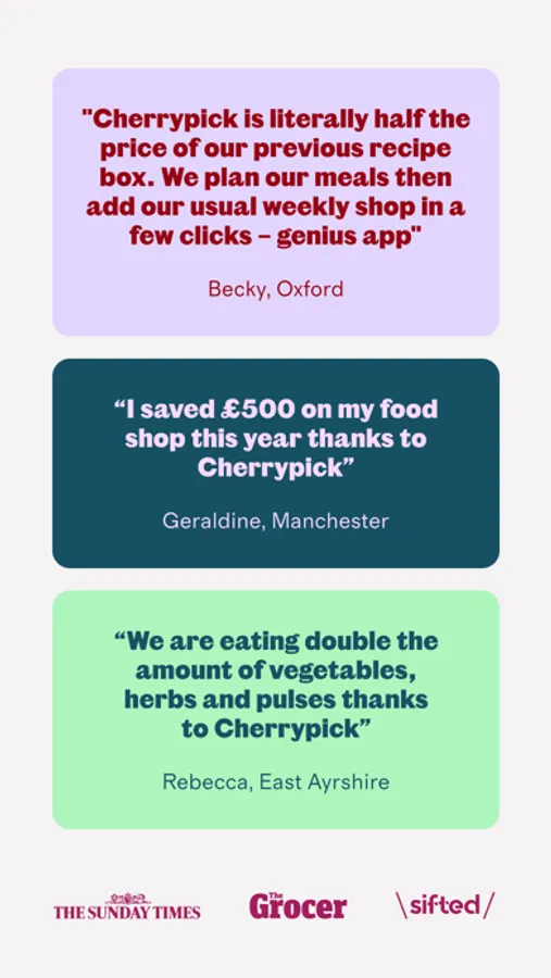 - “Saved £500 on my food shop this year, thanks to Cherrypick" - Geraldine, Manchester