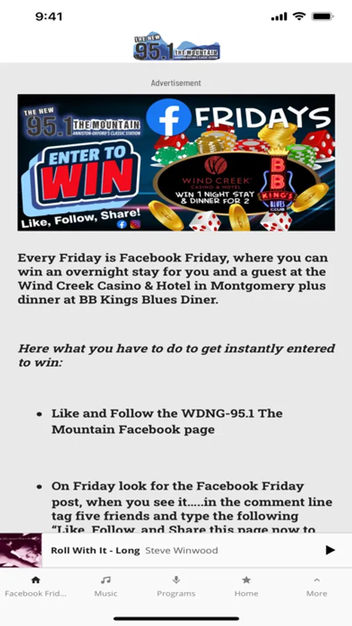 Get access to what’s happening locally and regionally, concert and contest information, sports, weather and you even get access to the website straight from the app.