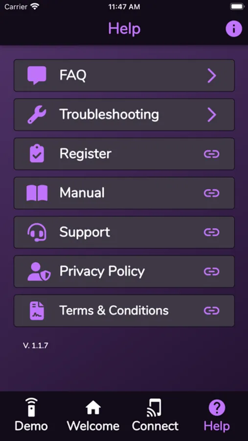 No matter where you are in the app, you are also always one tap away from the Help section, where we have embedded FAQ and Troubleshooting sections, along with links to: