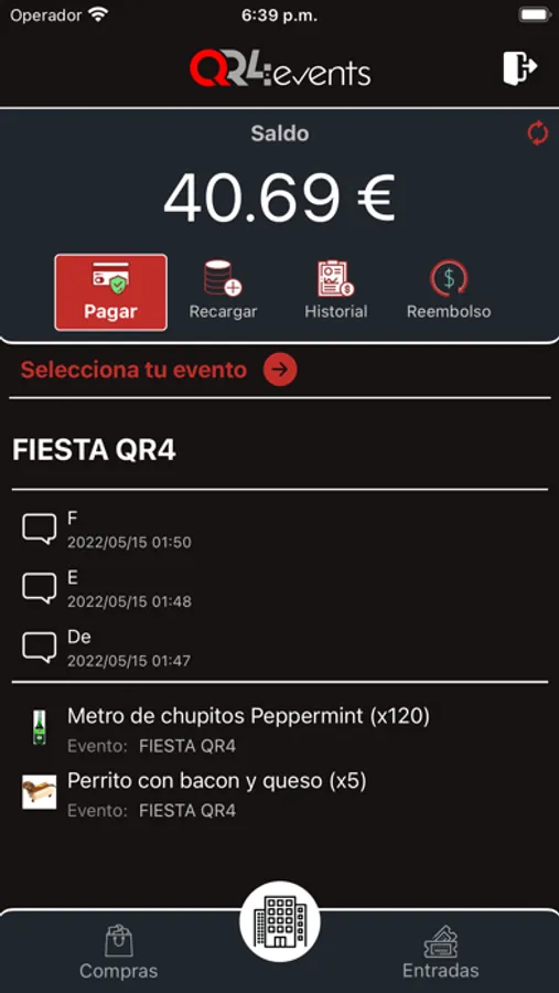 Los usuarios descargan la app y cargan dinero en su monedero antes del evento. En el evento irán directamente al punto de venta a comprar el producto que consideren, sin previo paso por un punto de venta de tickets que posteriormente se tengan que canjear por productos en el punto de venta.