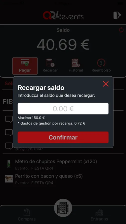 Una vez finalizado el evento los usuarios podrán descargar el dinero sobrante de su monedero de forma gratuita, optimizando al 100% el gasto realizado