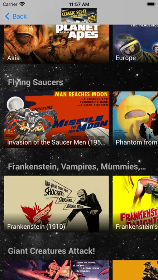 Experience the best classic science fiction films, TV shows, and serials from the 1940s, 1950s, and 1960s. Our vast library was curated by dedicated sci-fi fans from the vaults of film history. Experience flying saucers, aliens, giant mutated insects, outer space, mad scientists, radiation, killer robots, Godzilla, Gamera, and so much more, only on the Classic Sci-fi Movie Channel!