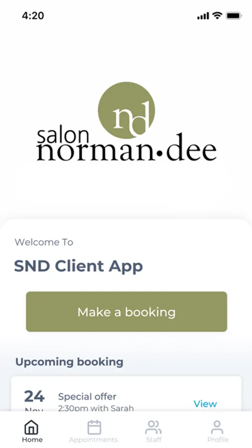 The SND Client App app makes booking your appointments and managing your loyalty points even easier. You're just a few taps away from feeling good and looking great!