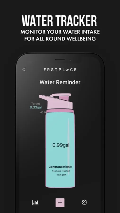 Staying hydrated is key to your physical and mental wellbeing, stay on track with our FRSTPLACE water tracker.