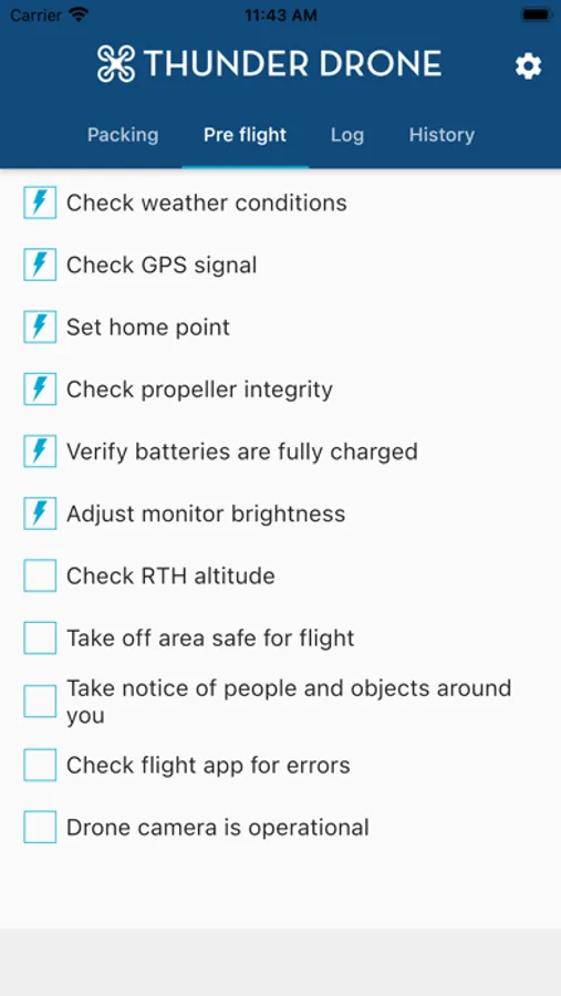 Thunder Drone, It's the ultimate drone checklist for responsible drone pilots. With Thunder Drone's intuitive interface, you can customize the application to add or remove items from your checklist. You want to save your data to the cloud? Thunder Drone has you covered, with its ability to email the flight checklist to your email account. With the touch of a button, Thunder Drone will record the current flight location, weather conditions, and date time stamp your flight. Thunder Drone keeps a running history of your flights. The application even keeps track of multiple drones you may fly, and keeps all your drone checklists in one convenient database. You tried the rest, now fly with the best with Thunder Drone!!!